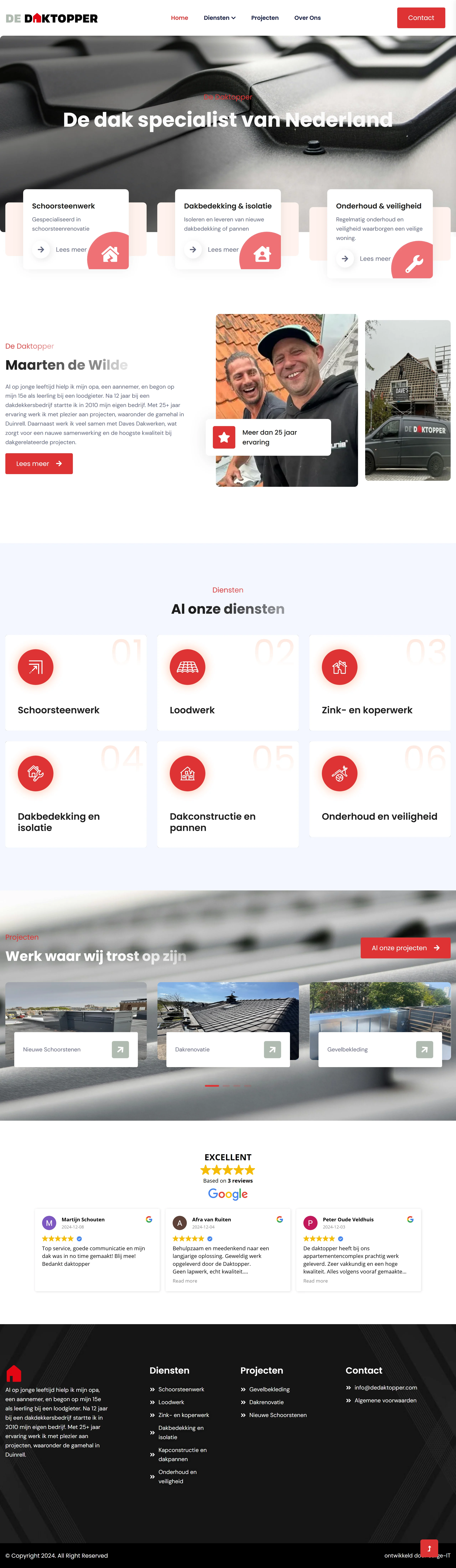 Soms ontstaan de beste samenwerkingen uit het niets. Tijdens een bezoek aan een van onze klanten schoof er onverwachts iemand aan: de eigenaar van De Daktopper. Terwijl we in gesprek waren over digitale oplossingen, raakten we ook met hem aan de praat. Hij had nog niets online geregeld, maar het enthousiasme in het gesprek wekte interesse en binnen korte tijd was de eerste stap gezet.