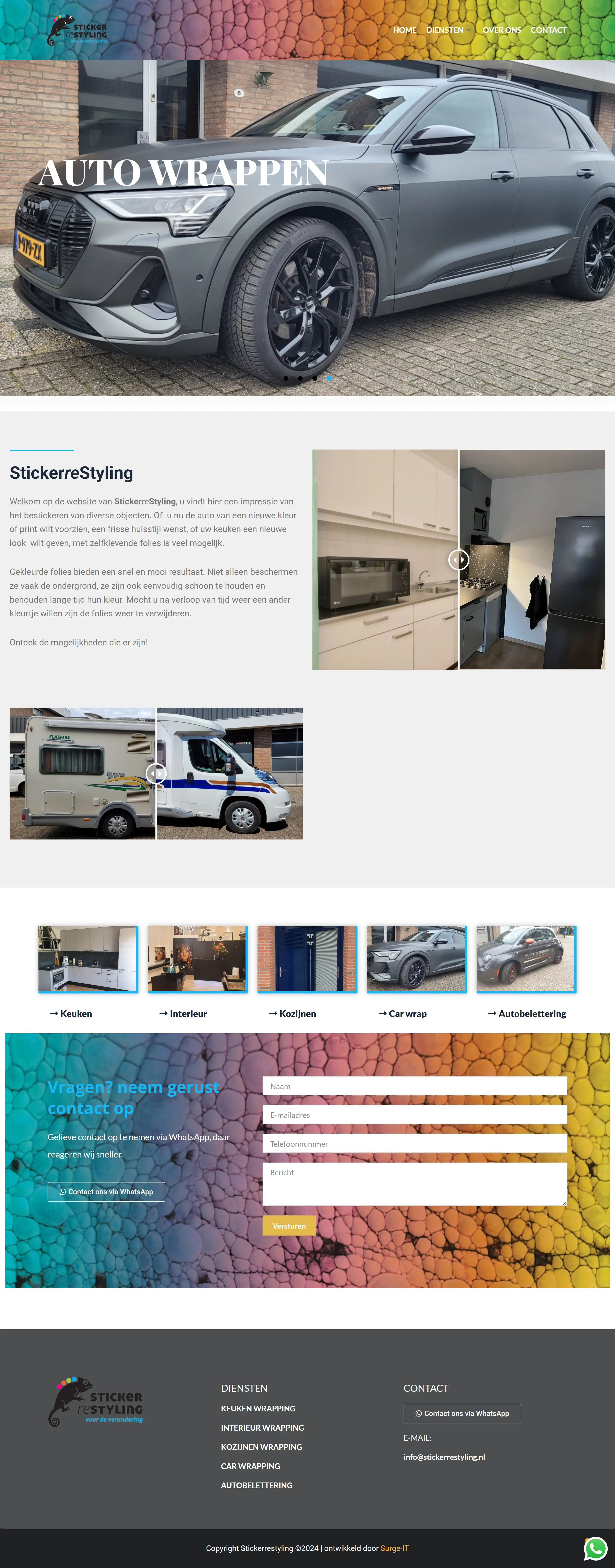 Soms ontstaan samenwerkingen op onverwachte momenten. Tijdens een keukenrenovatie van een van onze teamleden werd het inbouwwerk afgerond met een hoogwaardige wrap verzorgd door Marcel, eigenaar van Stickerrestyling. Wat begon met het verfraaien van een keuken, eindigde in een gesprek over digitale uitstraling. We kwamen tot de conclusie dat de website van Stickerrestyling inmiddels niet meer aansloot bij de kwaliteit van het werk die Marcel dagelijks levert.